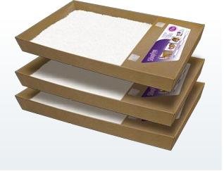 - Litter is completely free of perfumes and dyes and tray is made of recycled paper with no bleach added